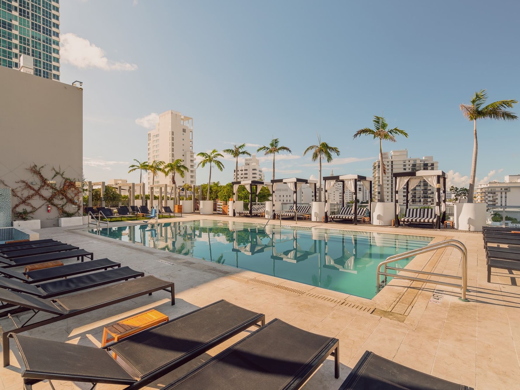 Enjoy our luxury rooftop pool deck framed by panoramic views of Miami Beach and the Atlantic Ocean.